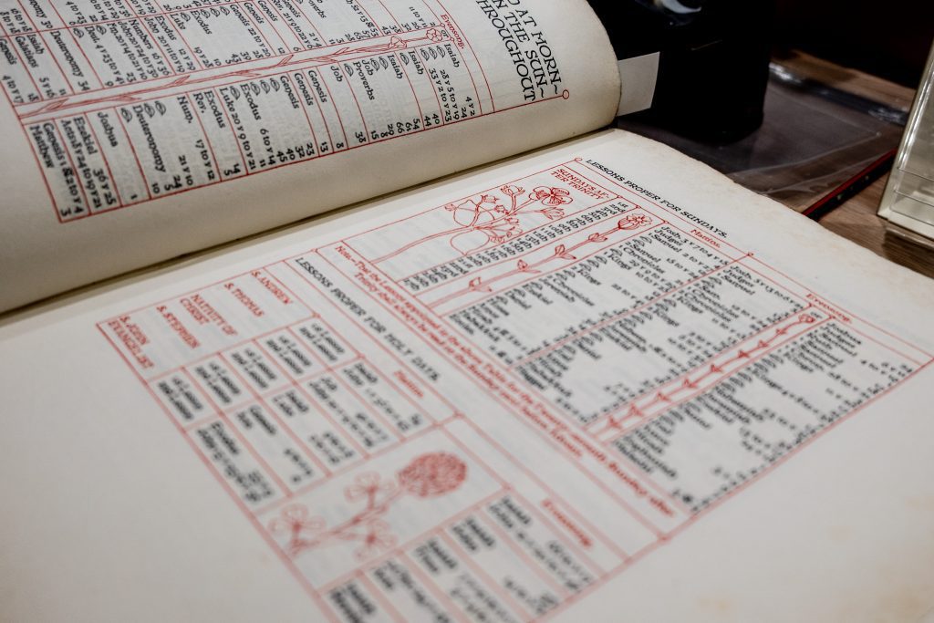 Printed for the coronation of Edward VII, this Book of Common Prayer mixes historic and modern design. The volume demonstrates how early 20th-century printers revived older liturgical aesthetics while incorporating contemporary artistic trends. It includes: