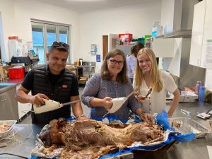 The Men’s event at night was a Meat & Meet. We had a delicious spit roast for dinner, and it was a relaxed and friendly environment for church members and their friends to come along to meet each other and hear a short testimony. Sam shared his story of how Jesus changed his life, and how there are costs to discipleship but that the great joy and hope far outweigh the costs. There were good conversations and challenges on what life is about and what it means to respond to Jesus. From the feedback cards, some men are now being followed up for Christianity Explored, coming to church, and reading the Bible with someone!