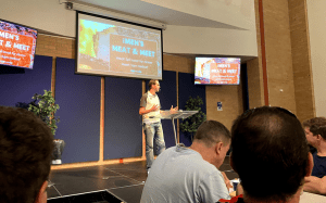 Sam sharing his testimony at the Men’s Meat & Meet