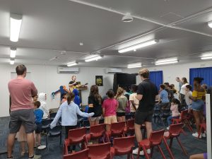 Today, we were able to partner with Hope Anglican Church and witness the growth of south-west Sydney for ourselves. We began with visiting local parks and shopping centres to hand out flyers for upcoming Easter services. We then ran a SRE assembly at a local primary school about Jesus, the good shepherd who knows us and loves us. After an opportunity to hear from some ministry staff about the future growth of the area, we got to be a part of their wild Friday night HUB where kids, youth and parents all come together. It was interesting to hear the motivation behind doing ministry in this way and immediately seeing it unfold.