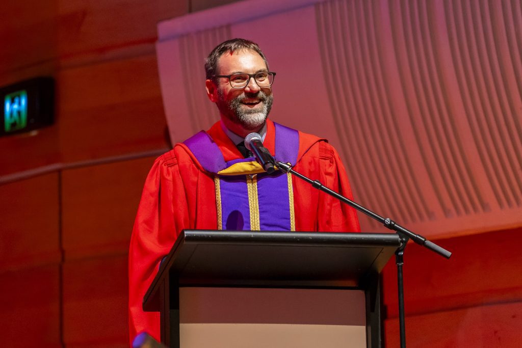 Simon spoke with his usual mix of humility and humour, sharing about the privilege of studying here, the unexpected path that led him onto Faculty, the months of prayer behind their decisions, and the “quirky but united” nature of the College.