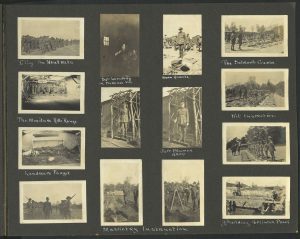 Two photo albums held in the Samuel Marsden Archives provide a unique pictorial record of the activities of the 8th Infantry Training Battalion AIF, stationed in Wiltshire during 1916 and 1917. They were taken by Cecil Green, who survived the war, returned to Australia and built a house in Croydon. A keen amateur photographer, he filled most of the albums with pictures he took during his travels around Ireland and southern & central England. Since there is no mention of a dark room, he probably have developed the film and compiled the scrapbooks later. Cecil was born in New Zealand, became a carpenter and was already widowed when he joined the army in 1915 at the age of 27*.